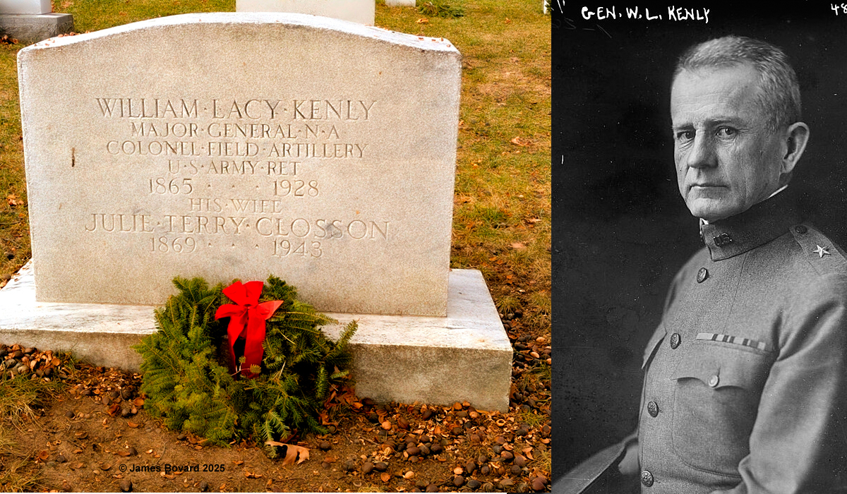 I visited Arlington National Cemetery today and saw for the first time the grave of my great-uncle, Major General William Lacy Kenly. He was Chief of Air Service, American Expeditionary Forces during World War One. He received the Army Distinguished Service Medal in 1918 for having “rendered services of inestimable value to the Government in positions of great responsibility.” According to a Wikipedia page on him, Kenly “was the titular head of the newly-established United States Army Air Service” for part of World War One. Here’s a page on his record from the World’s Military History Wiki.