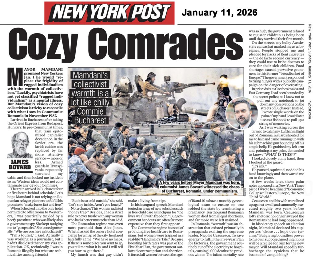Mayor Mamdani promised New Yorkers Jan. 1 he would “replace the frigidity of rugged individualism with the warmth of collectivism.” Luckily, psychiatrists have not yet classified “rugged individualism” as a mental illness. But Mamdani’s vision of cozy collectivism is tricky to reconcile with what I saw in Communist Romania in November 1987.