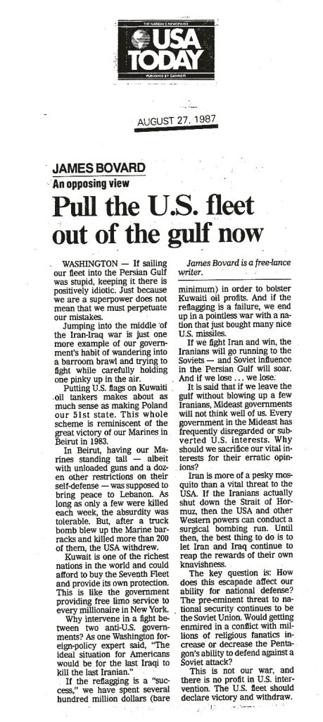 1987: My USA Today Oped – Pull U.S. Out of Persian Gulf