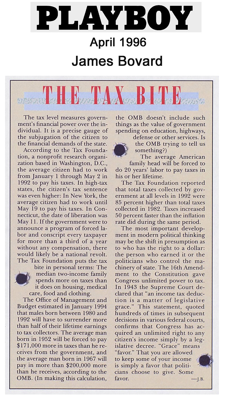 As long as people are getting screwed on Income Tax Day, here’s a flashback to one of my favorite Playboy articles from 30 years ago.  (Article text below images)