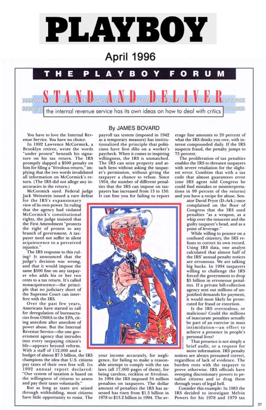 HEADLINE: Stand and deliver: the Internal Revenue Service has its own ideas on how to deal with critics.The Playboy Forum